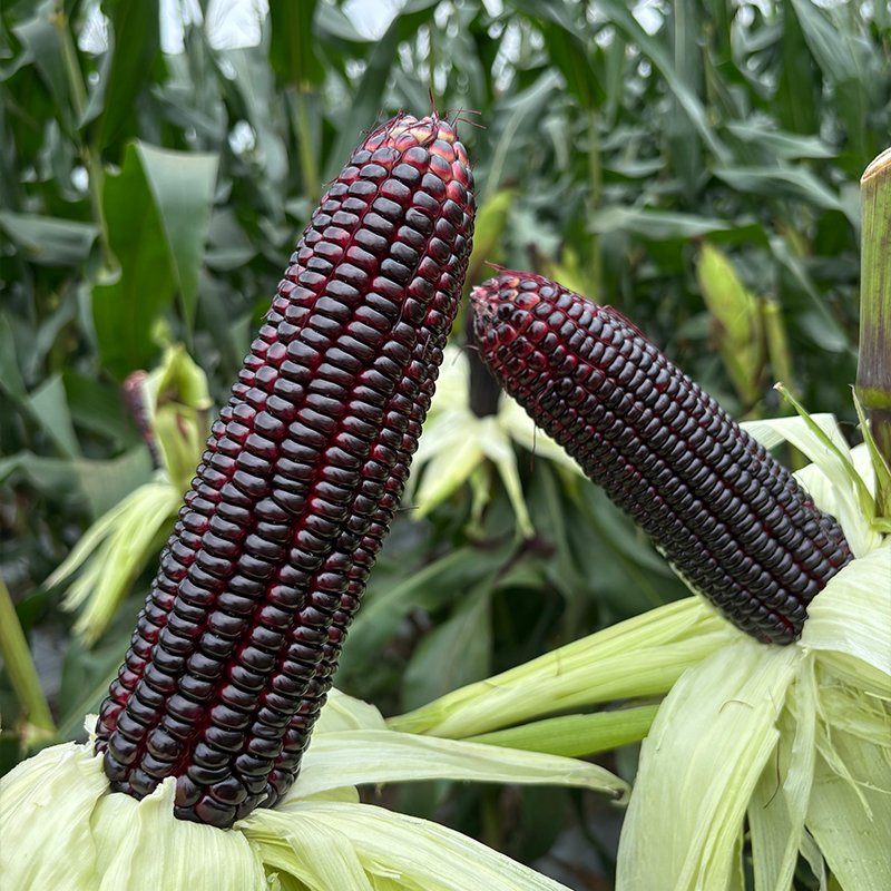 超甜型鮮食玉米雜交種,出苗至鮮穗采收春季平均86天,秋季平均75天。株高210cm左右,穗位高84cm左右,株型半緊湊。果穗呈圓筒型,穗長約18cm,穗粗約5cm,穗行數(shù)14-16,每行約39粒。籽粒紫黑色,上色早、快、均勻,最佳采收期糖度達(dá)16.5度,皮薄、渣少,花青素含量高,風(fēng)味佳,生吃熟食皆宜。