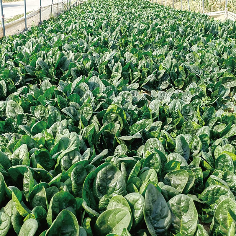 小圓葉趴地菠菜,葉柄短,葉片厚、墨綠色,光澤度高,纖維少,口感滑嫩,趴地性突出,耐熱性較好,葉片舒展。