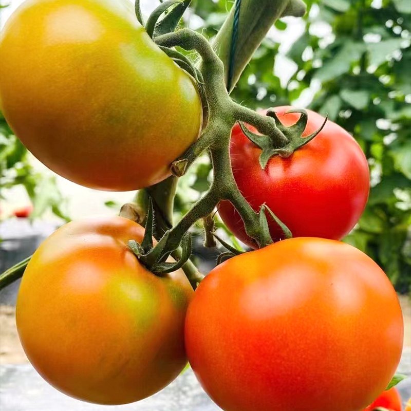 無限生長(zhǎng)粉紅色番茄,長(zhǎng)勢(shì)強(qiáng)勁,耐低溫、座果性好,青肩明顯,果實(shí)高扁圓,單果重 220-250克左右,硬度好,耐儲(chǔ)運(yùn)。耐花葉病毒病、黃化曲葉病毒病、枯萎病、葉霉病、根部線蟲等。